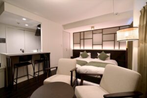 1LDKのマンションの1室をリフォームと造作でヘッドボードを作りレトロ感のあるジャパンディスタイルでまとめました。